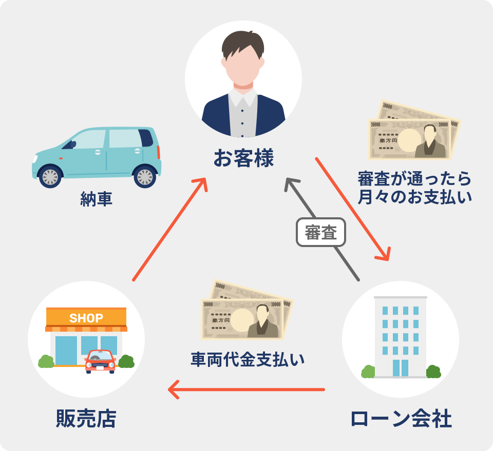 信販会社が中古車販売店とお客様との間に入り、